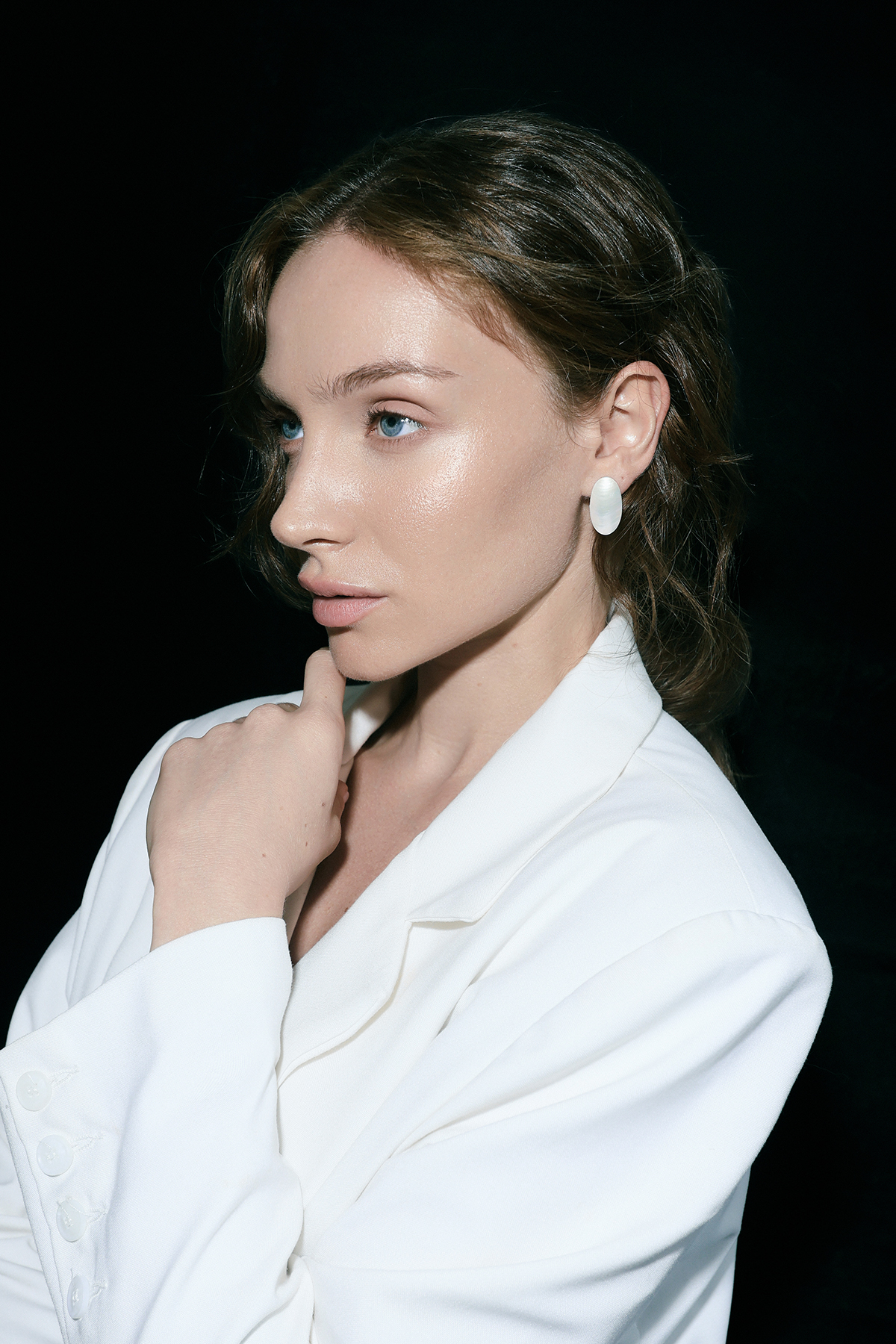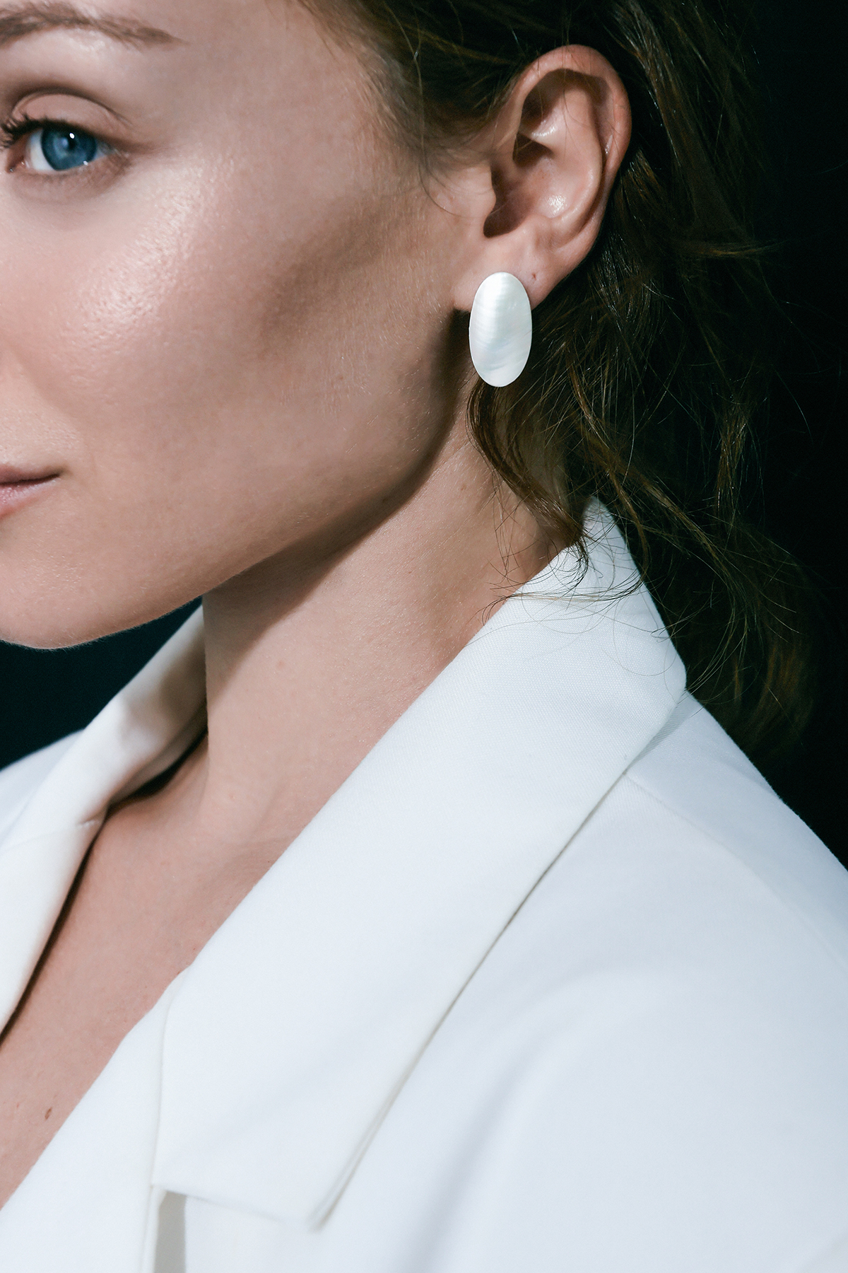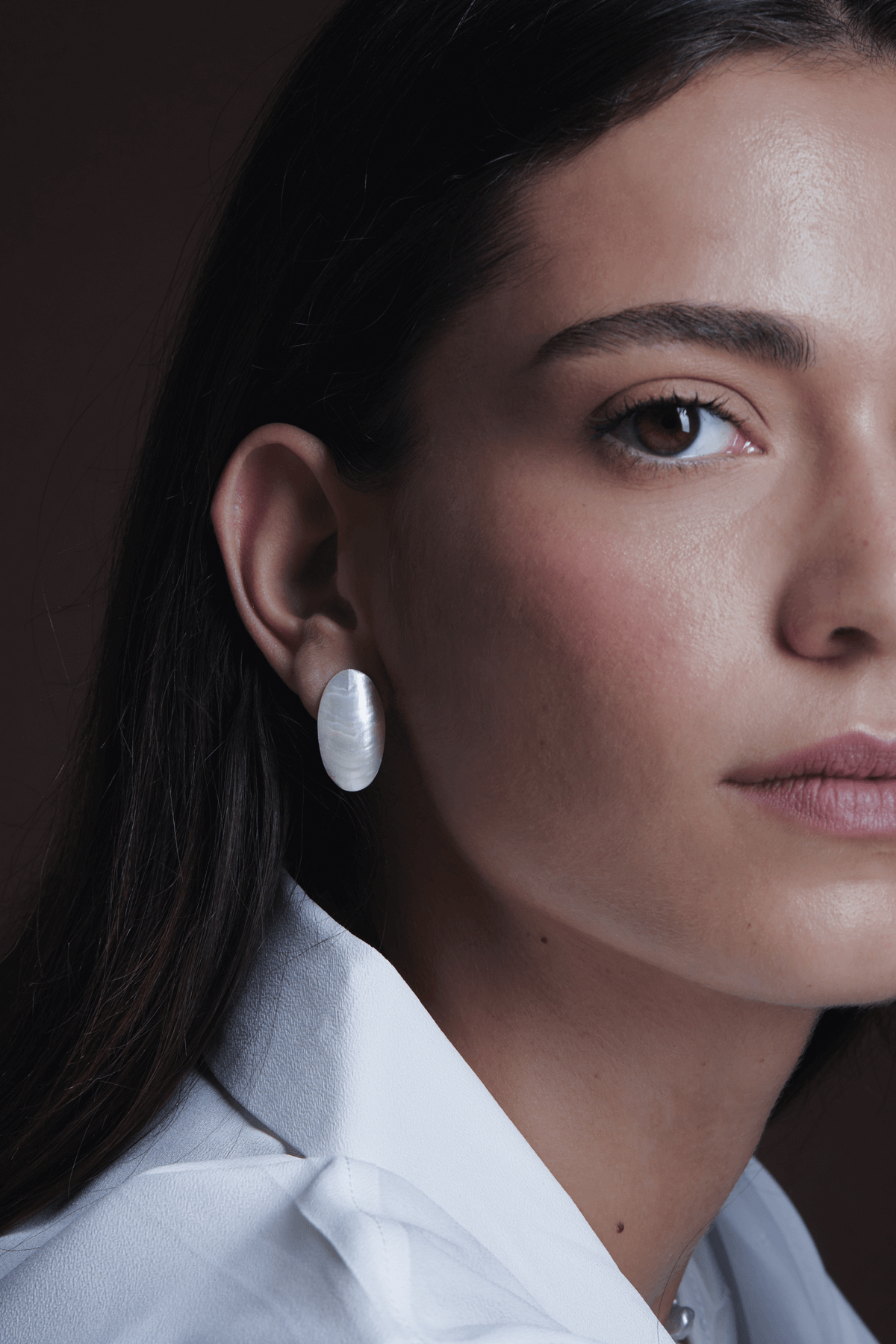 עגילים יוקרתיים בעיצוב לב עשויים צדף פנינה, המשדרים אלגנטיות ורומנטיקה נצחית עם זוהר טבעי ומעודן.