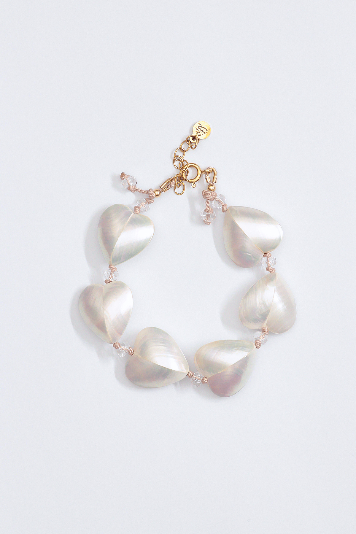 צמיד לבבות איקוני עם פנינת אם טבעית, נוכחות של גלאם ונשיות בעוצמה אחת מושלמת.