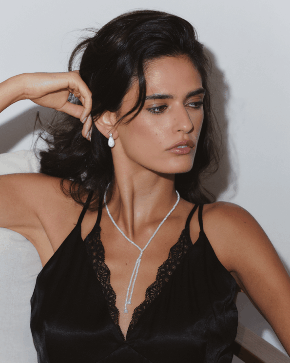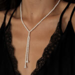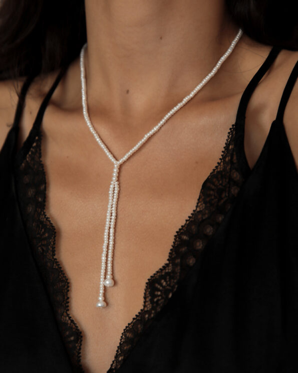 שרשרת עניבה עשויה פנינים טבעיות, עם עיצוב נקי ועדין המעניק מראה רומנטי ועל־זמני.