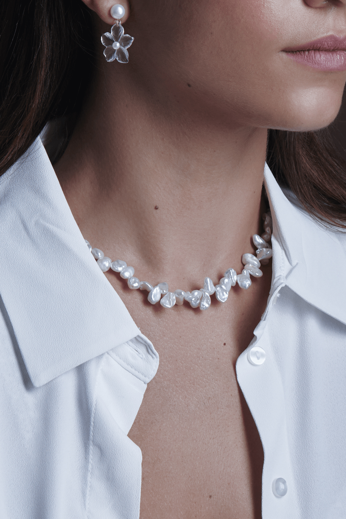 תכשיט יוקרתי בעיצוב זוהר ונשי, עשוי מפניני מים מתוקים מהאיכות הגבוהה ביותר, שנבחרו בקפידה בזכות הברק הרך והצורה האלגנטית שלהן.